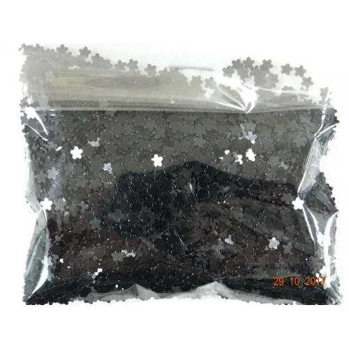 брокат - цветя , черен , размер : 3 мм