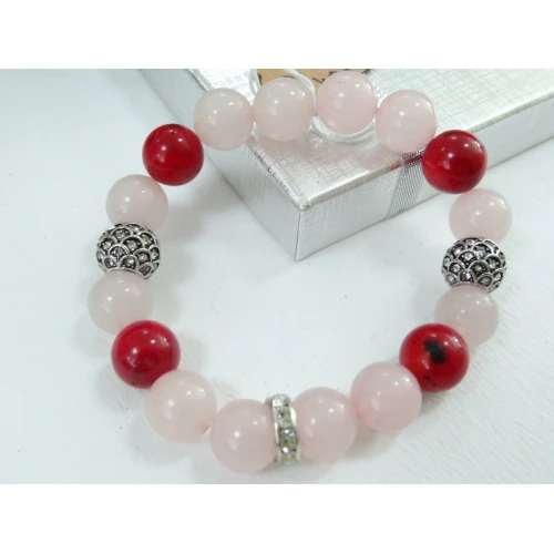 дамска гривна - розов кварц и корал - 10 мм