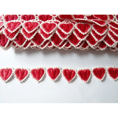 дантела за декорация - сърца , червени