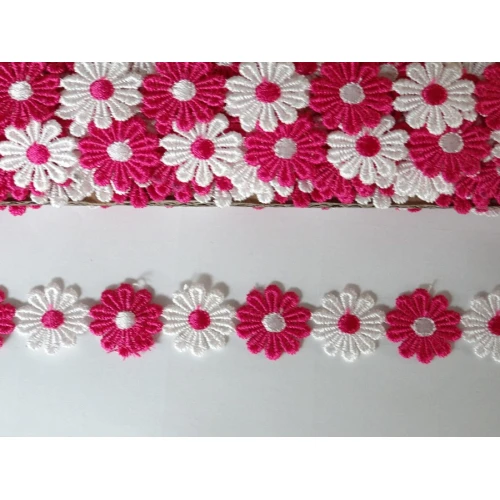 дантела за декорация - цветя , бели и тъмно розови