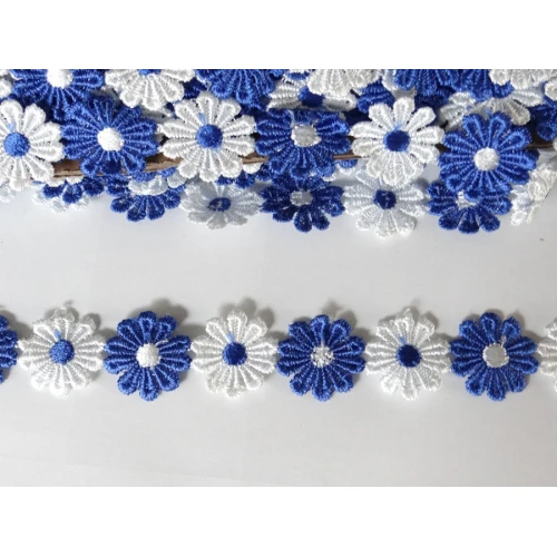 дантела за декорация - цветя , бели и тъмно сини