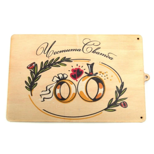дървен плик за пари с надпис : ЧЕСТИТА СВАТБА