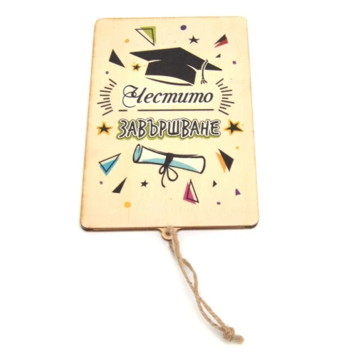 дървен плик за пари с надпис : ЧЕСТИТО ЗАВЪРШВАНЕ