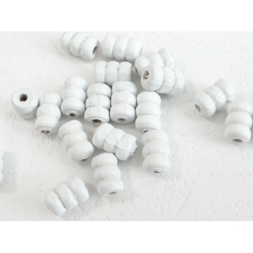 дървени мъниста - цилиндър , бял