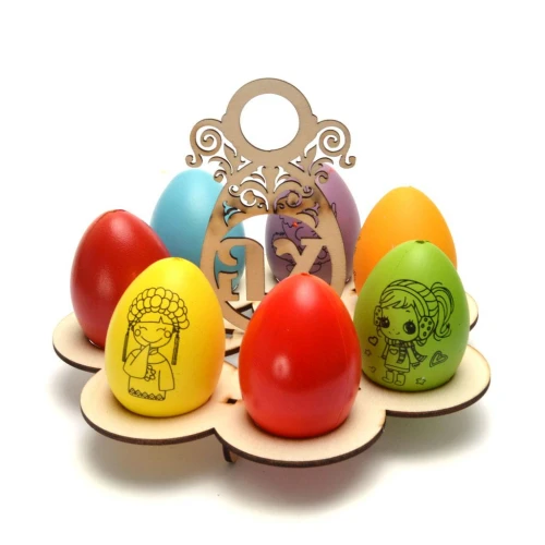 Лазерно рязан дървен елемент - поставка за 7 броя великденски яйца.