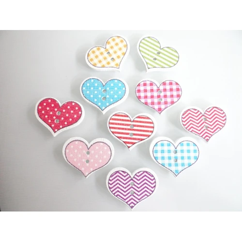 дървени копчета - сърца , пъстри