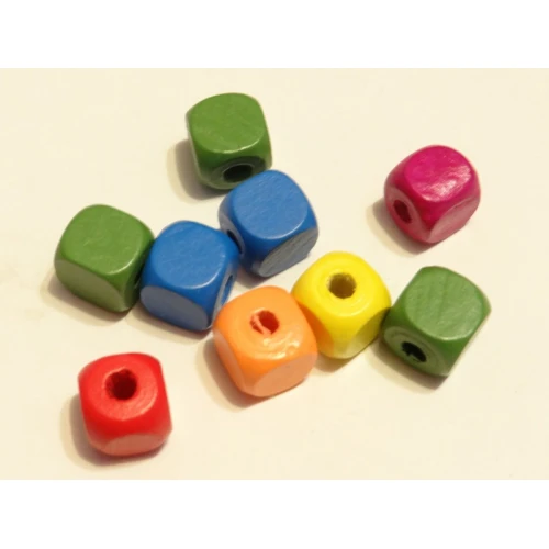 Дървени мъниста - кубчета заоблени , микс от различни цветове