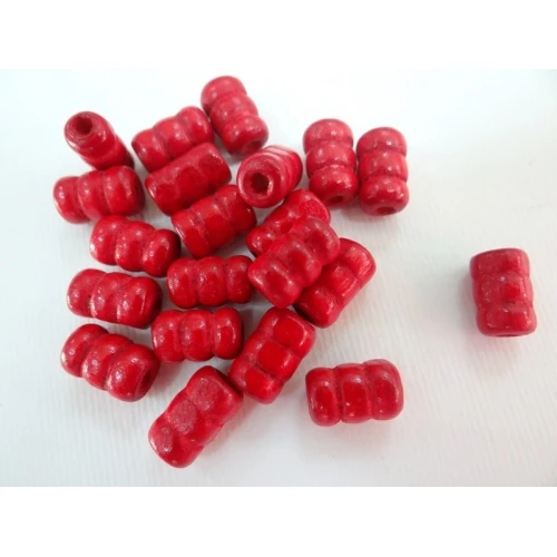 дървени мъниста - цилиндър , троен , червен