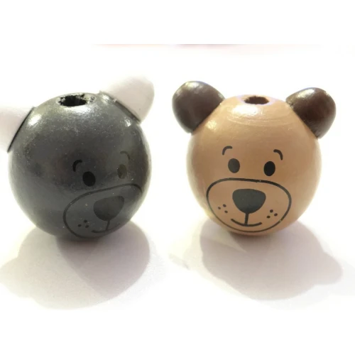 дървени мъниста - главичка на мече , микс , момче