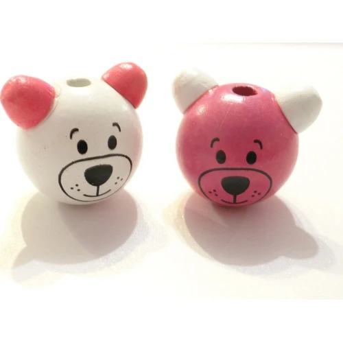 дървени мъниста - главичка на мече , микс , момиче