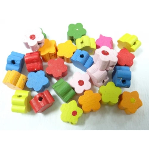 дървени мъниста - цветя , микс от цветове