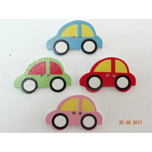 Дървено копче - колички , разноцветни