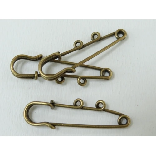 декоративна безопасна игла с 2 отвора - метална , антик