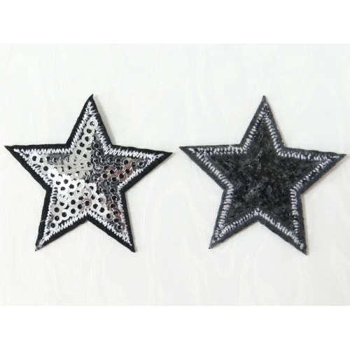 емблема за топло лепене - звезда , черна основа със сребристи пайети