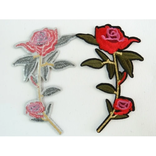 емблема за топло лепене - роза , червена със златисто ламе