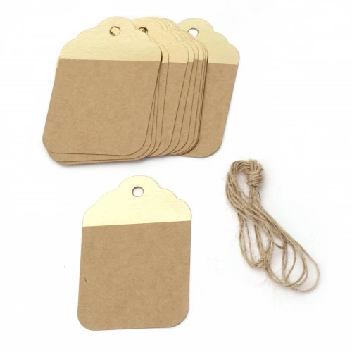 картонени тагове - крафт картон и злато с шнур ЮТА