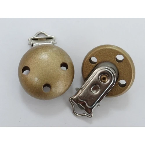 дървен клипс за биберон - златисти
