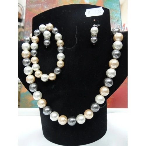 бижутата са направени от перли - сиви , бели и цвят крем