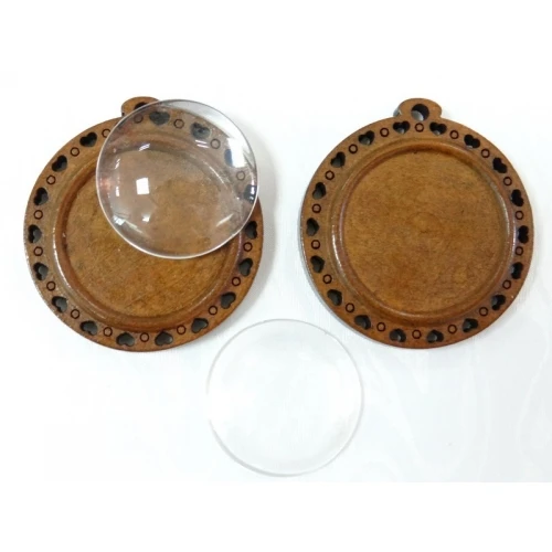 размери : d на стъклото - 25 мм , d на дървената част - 35 мм