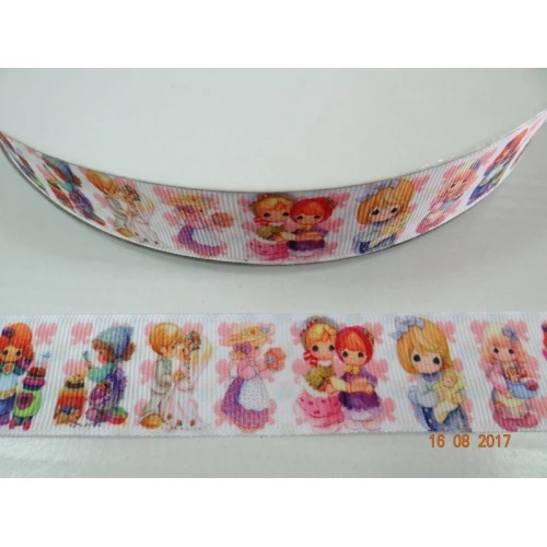 лента сатен - бяла с момиченца