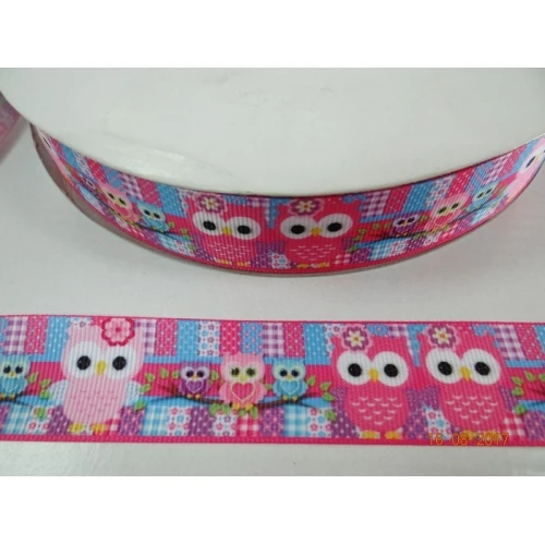 лента сатен - розова с бухалчета