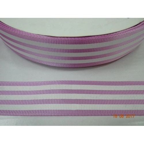 лента сатен - светло лилав с бели ленти