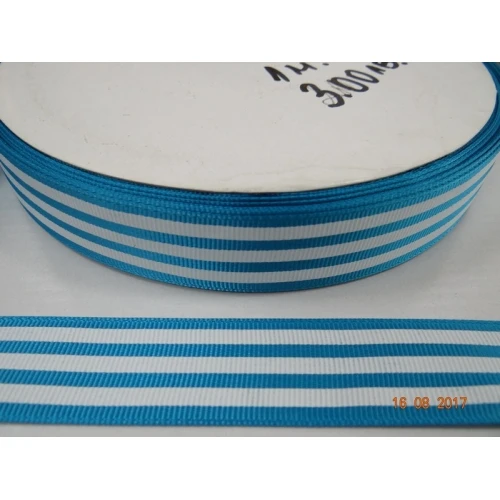 лента сатен - синя с бели ленти