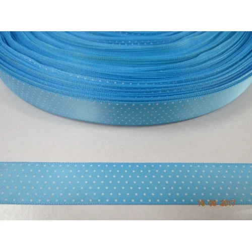 лента сатен - сини на бели точки