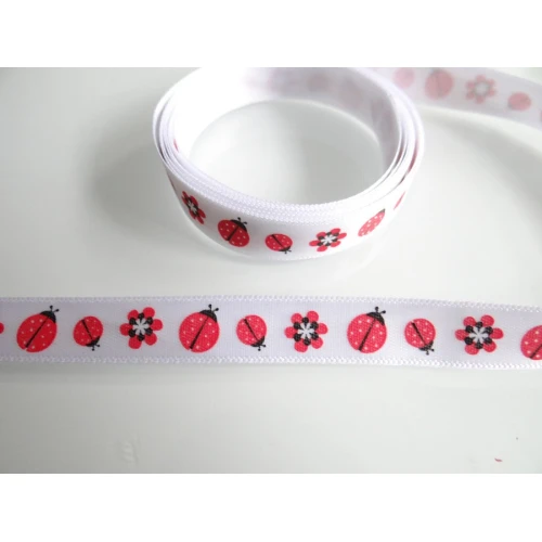 сатенена лента за декорация - бяла с червени калинки