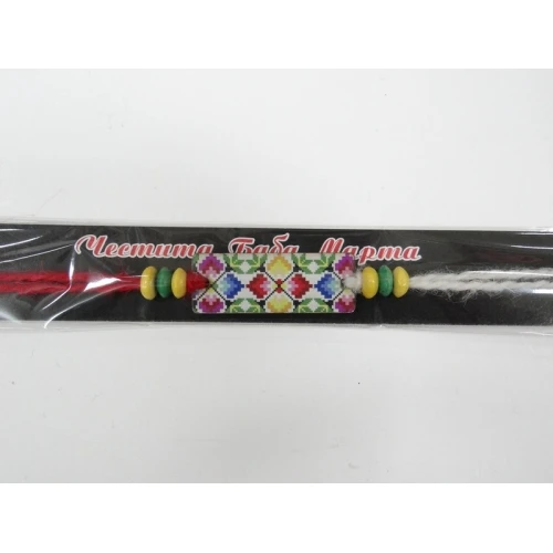 мартеничка - гривна с вълнен шнур и плочка от МДФ със шевица