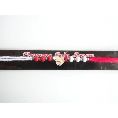 мартеничка - гривна с вълнен шнур и дървено сърце