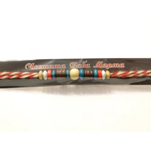 мартеничка - гривна с вълнен шнур и дървени мъниста