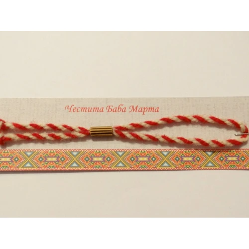мартеничка за ръка от вълнен шнур и стопер - пластмасово мънисто Антик