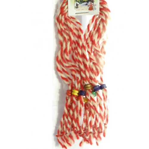 мартенички за ръка от вълнен шнур и стопер - дървени мъниста