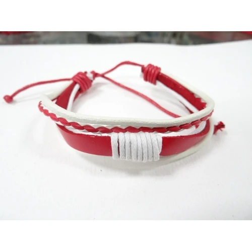 гривна от естествена кожа - бяло и червено