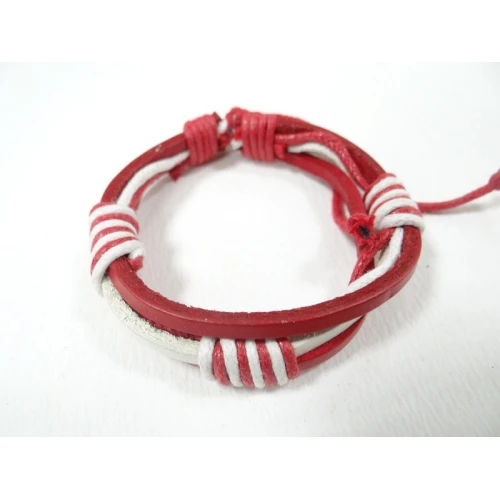 гривни от естествена кожа - бяло и червено