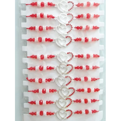 неопаковани - гривна , бели и червени мъниста , регулируема