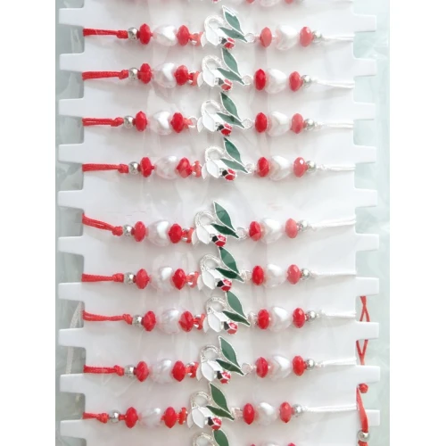 неопаковани - гривна , бели и червени мъниста , регулируема