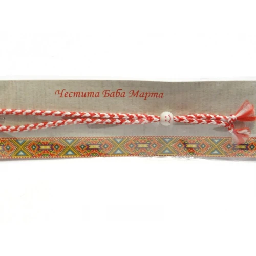 мартеничка за ръка от шнур със стопер - пластмасово мънисто