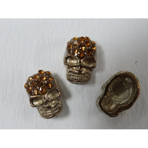 метални мъниста - череп , златист с жълти камъчета