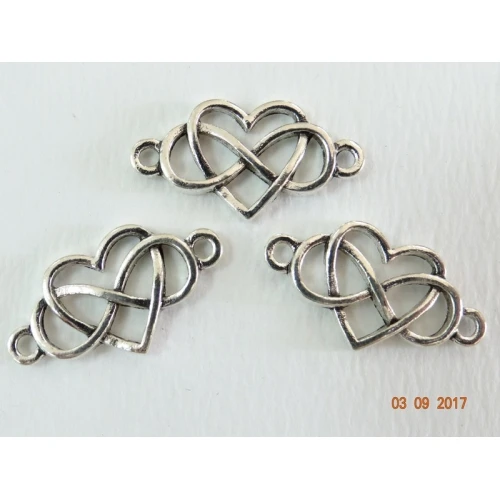 метален свързващ елемент - сърце преплетено с безкрайност, сребристо