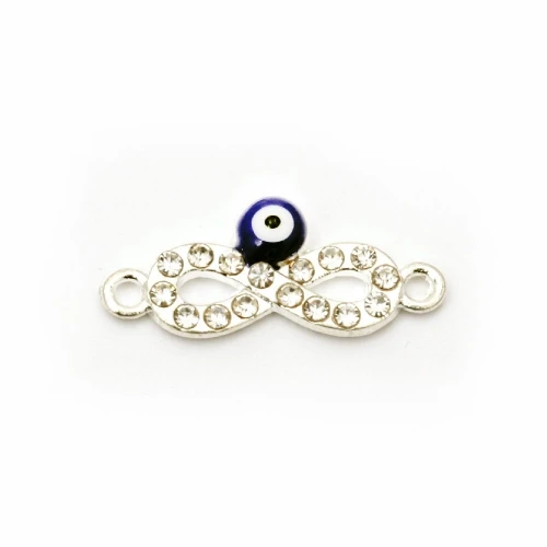 метален свързващ елемент - безкрайност с прозрачни камъчета и синьо око