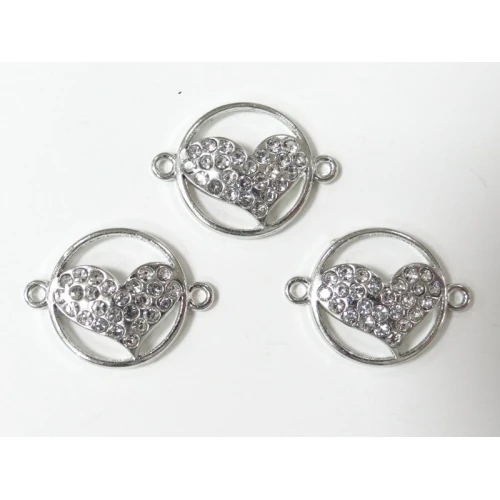 метален свързващ елемент - сърце , сребристо с камъчета