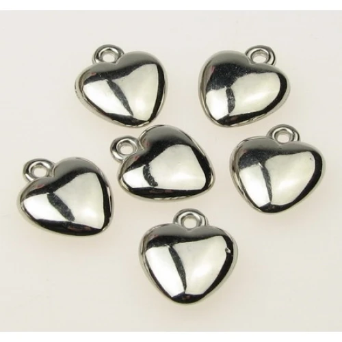 пластмасови метализирани мъниста със ССВ покритие - сърце , сребристо