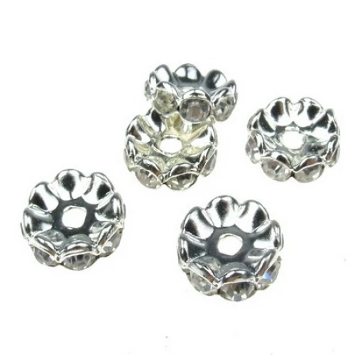 Метални шайби с прозрачни кристали - сребристи