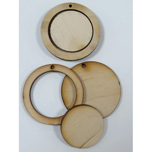 основа за декорация от шперплат - кръг , бежов , висулка , 3 части