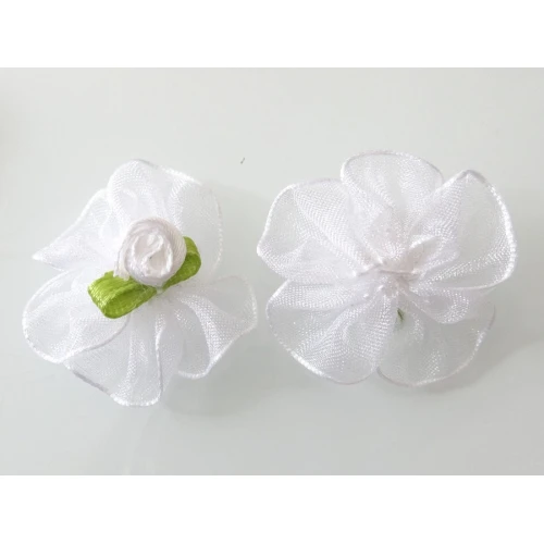 панделки от органза със сатенена розичка - бели