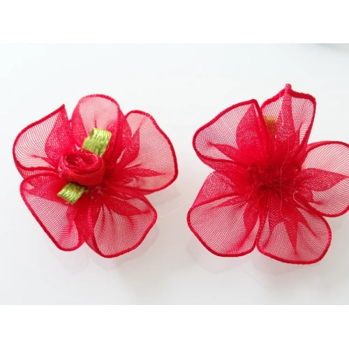 панделки от органза със сатенена розичка - червени