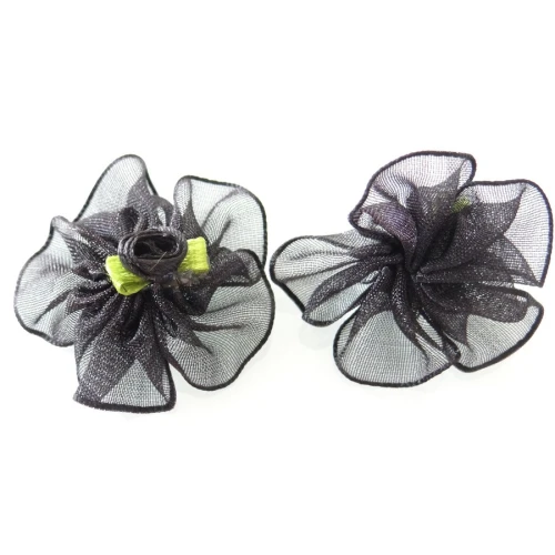 панделки от органза със сатенена розичка - черни