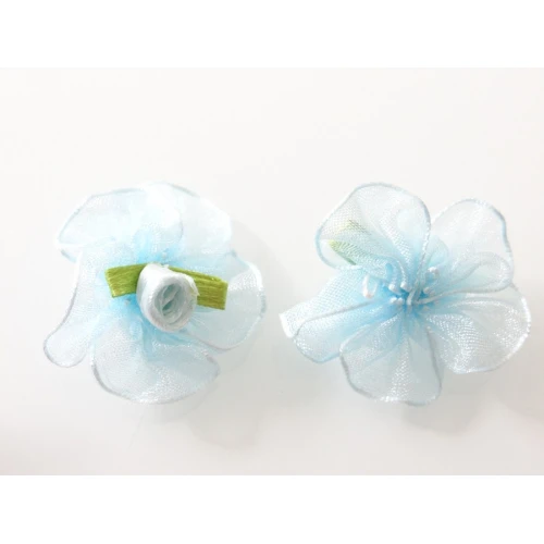 панделки от органза със сатенена розичка - сини